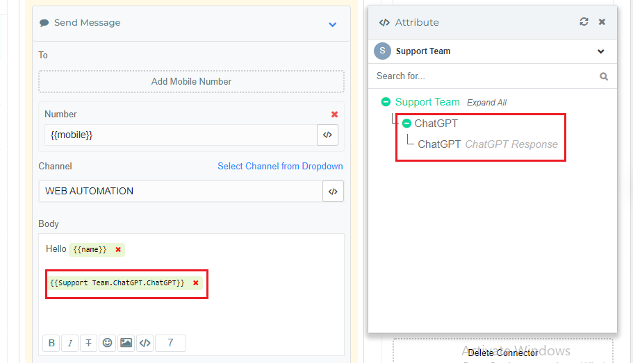 The Send Instant Notification settings will be the same in Connector, Workflow and Chatbot.
