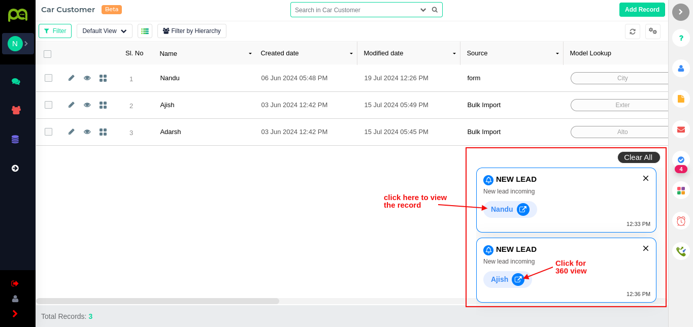 When notifications arrive continuously, they will stack one above the other. You can view records by clicking the record name, as shown in the image below