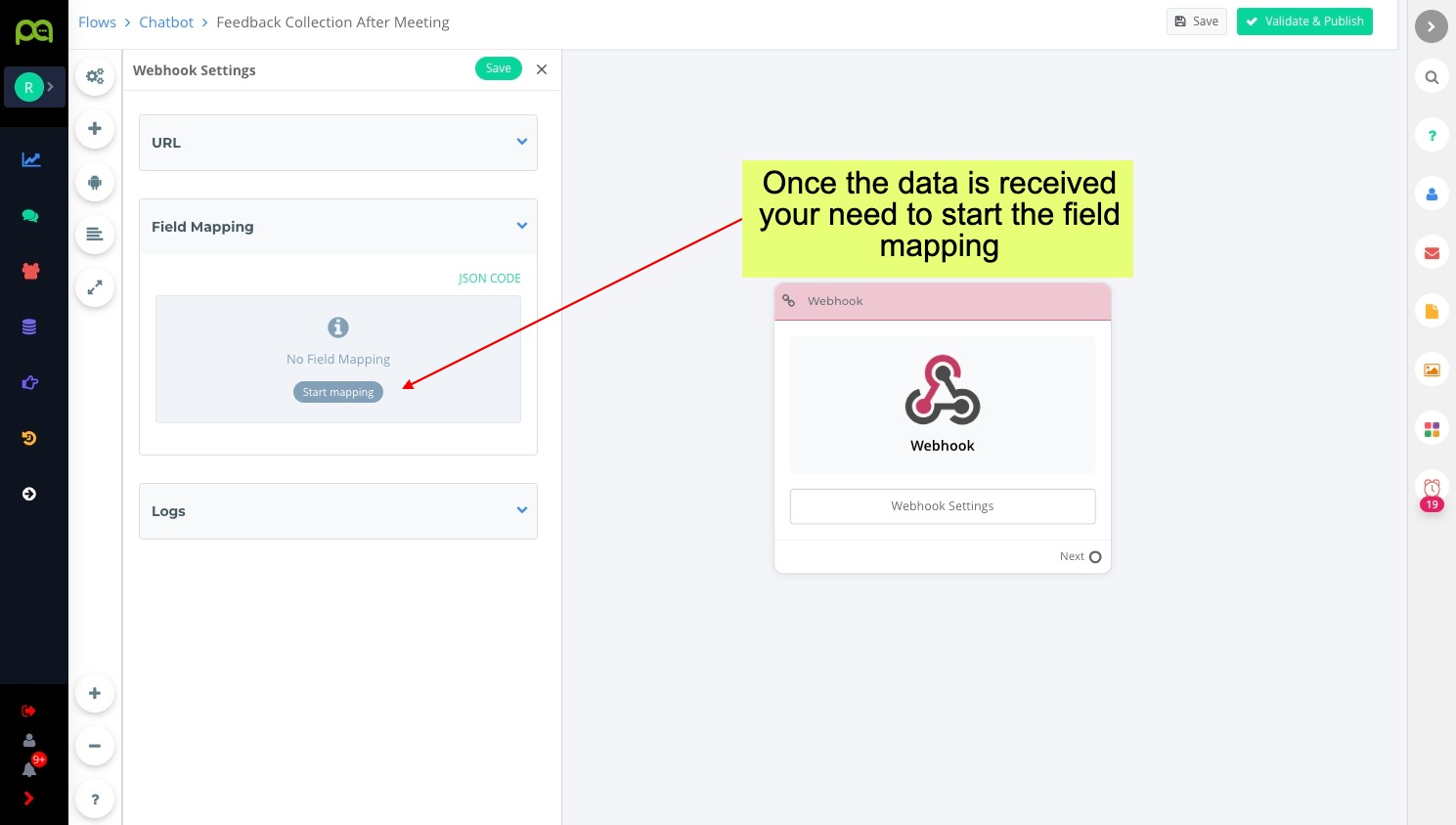 For example, let's say you have sent a payment link to a user, and you're unsure when the user will make the payment. By configuring a webhook in the payment gateway, whenever the system receives an event from the payment gateway (e.g., payment confirmation), the chatbot will automatically execute the next step that you have configured in the flow. This allows for seamless integration and automation of processes.
